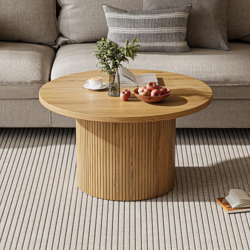 63" Fluted Sliding Door TV Stand and 35.4" Round Coffee Table Set for Living Room
